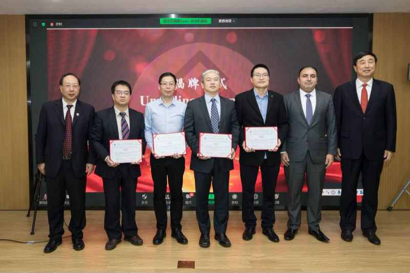 揭牌儀式環節,宋軍、黃先開和拉赫曼共同為聯合培訓中心揭牌,并為專家代表中國工業經濟聯合會企業社會責任促進中心主任王曉光、ISO26000利益相關方全球網絡專家委員會委員郭毅、鳳凰衛視《龍行天下》執行總編張洪福、聯合國第75屆聯合國大會科技報告SDG6學術專家組副組長鄭姚閩頒發聘書。