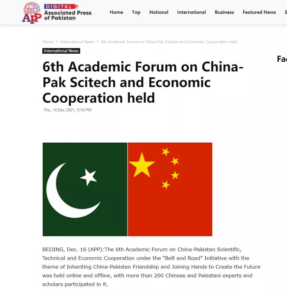 網址:https://www.app.com.pk/global/6th-academic-forum-on-china-pak-scitech-and-economic-cooperation-held/
