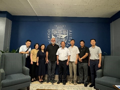 在芝加哥訪問(wèn)期間,黨委書(shū)記黃先開(kāi)一行先后訪問(wèn)了美國(guó)伊利諾伊大學(xué)芝加哥分校和美國(guó)多米尼加大學(xué)。在伊利諾伊大學(xué)芝加哥分校訪問(wèn)期間,代表團(tuán)一行與該校國(guó)際部舉行項(xiàng)目會(huì)談,雙方回顧了2022年雙方建立校級(jí)合作關(guān)系以來(lái)所開(kāi)展的交流交往以及合作成果,并就下一階段雙方在碩博層次人才培養(yǎng)、高層次師資交流、科研項(xiàng)目合作以及商科數(shù)字化教育平臺(tái)建設(shè)等內(nèi)容交換了意見(jiàn),并達(dá)成了初步合作意向。隨后,代表團(tuán)成員在國(guó)際部項(xiàng)目主任Jeff Wang的陪同下參觀了校園的相關(guān)教學(xué)設(shè)施。