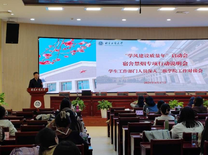 為進一步提升學工隊伍信息化水平,為隊伍賦能減負,結合輔導員年度培訓計劃,學校于4月17日在良鄉校區組織學工隊伍4月專題培訓,會上就學風建設質量年、宿舍禁煙專項行動、學工部門深入二級學院等近期重要工作一并部署。培訓由學生處處長鄭光主持,各學院副書記、全體輔導員、學工職能部門工作人員參會。