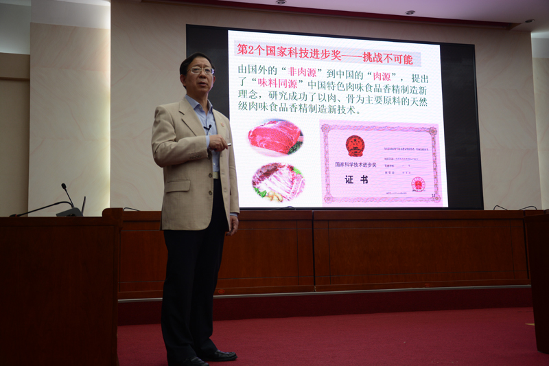孫寶國校長以食品學院應用化學專業第一屆本科畢業生的身份,歡迎各位新同學們加入到應用化學專業這個大家庭。他從生活中最細微的事例談起,以國家大劇院玻璃頂的仿荷葉的疏水性能,引出了應用化學與日常生活的關系;他引用魯迅、馬克思、但丁等國內外名人名言闡述堅持走自己道路的重要性,引用諾貝爾醫學獎獲得者屠呦呦、阿里巴巴創始人馬云的事例說明了專業與以后發展道路的關系。隨后,孫校長從親身經歷出發,以獲得三個國家科技進步獎和一個國家技術發明獎為主線,從“初生牛犢不怕虎”、“從挫折中奮起”、“挑戰不可能”、“科普新篇章”等幾個方面介紹了他的科研經歷,同時他將不忘初心撰寫《躲不開的食品添加劑》、與白酒釀造工藝的不解之緣、延安干部學院學習心得等內容與在座同學進行了分享。在演講的結尾,孫院士對同學們提出了五點希望:學好基礎課,夯實專業基礎,提出了五大化學課程的重要性;認真上好實驗課,培養科研動手能力;學好英語,為走向世界創造條件;做好人生規劃,早做準備;考試不作弊,做一個有誠信的人。最后他鼓勵大家用自己的雙手托起美好的明天。