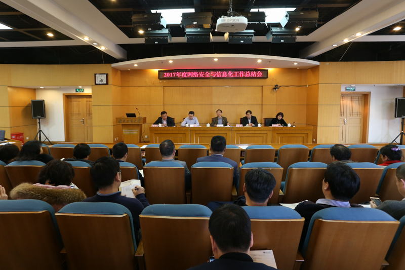 網(wǎng)絡(luò)中心主任李海生做了學(xué)校2017年網(wǎng)絡(luò)安全與信息化建設(shè)工作報告,介紹了學(xué)校信息化現(xiàn)狀、校園網(wǎng)建設(shè)與優(yōu)化、網(wǎng)絡(luò)安全、信息化項目專項申報工作進展、應(yīng)用系統(tǒng)運維、多媒體技術(shù)應(yīng)用、機房保障等方面取得的成績及存在的問題。他談到,2018年信息系統(tǒng)建設(shè)將繼續(xù)秉承統(tǒng)一規(guī)劃與頂層設(shè)計的建設(shè)原則,堅持由“系統(tǒng)為中心”向“應(yīng)用與服務(wù)為中心”轉(zhuǎn)變、由“重信息的收集、存貯、傳送為主”向“兼重大數(shù)據(jù)的利用”轉(zhuǎn)變的工作思路,努力為學(xué)校建立以信息共享為特征的統(tǒng)一信息資源服務(wù)平臺,探索推進智慧校園建設(shè)。