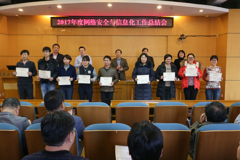 校辦王小藝主任宣讀了對在2017年度網(wǎng)絡(luò)安全與信息化建設(shè)與管理工作中的先進單位和個人進行表彰的決定,與會領(lǐng)導(dǎo)為獲獎單位和個人發(fā)獎。
