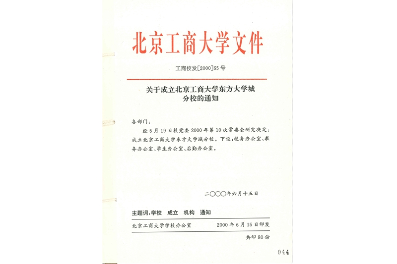 2000年5月19日,學校黨委常委決定設立廊坊分校組織機構。7月中旬,學校決定成立廊坊“東方大學城”分校。