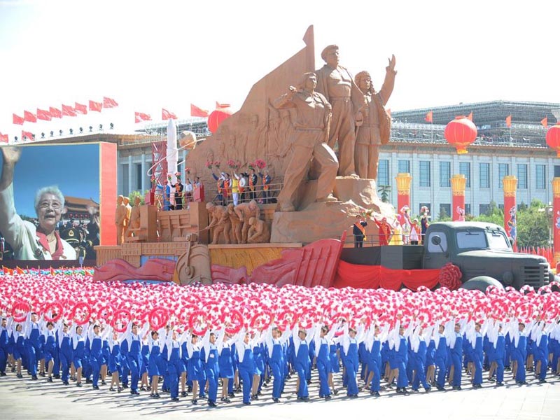 100天的艱苦訓練,238步的完美表演,成就了69秒的輝煌。2009年,根據北京市的要求和市委教育工委的安排,我校承擔3項新中國成立60周年慶祝活動任務,共選派2347名學生參加活動。其中,選派2156名學生參加房山區群眾游行“艱苦創業”方陣,80名學生參加廣場合唱方陣,50名學生參加廣場聯歡方陣;另外還派出61名學生參加房山區長陽鎮的集體舞方隊。