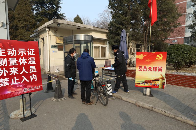 “站好這班崗,護好一校人。”2月11日7:50,迎著朝陽,學校辦公室、黨委組織部(統戰部)的黨員中層干部和工作人員在學校阜成路校區的西區南門、東區南門開始了工作,出入登記、檢查證件、測量體溫……有序開展疫情防控工作。