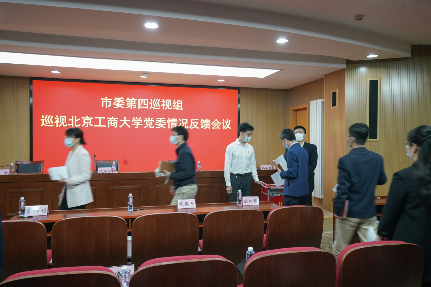 市委第四巡視組副組長耿新和巡視組、巡視辦有關同志,市紀委市監委有關同志,北京工商大學領導班子成員等出席會議;學校相關職能部門負責人、教職工代表等有關人員列席會議。