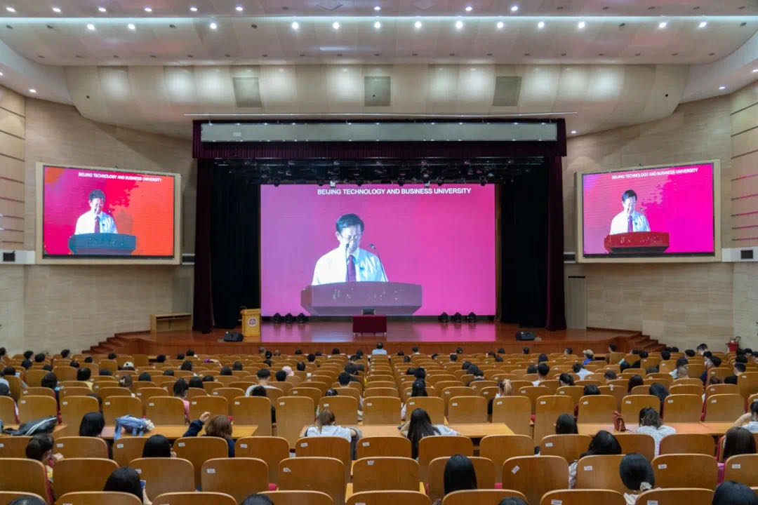 校長孫寶國院士代表學校黨委和行政向1458名研究生新同學的到來表示熱烈的歡迎!孫寶國校長指出,2020年是不尋常的一年,新冠肺炎疫情肆虐全球給大家的學習和生活帶來較大影響,各位同學積極響應國家號召,以各種形式投入到疫情防控中,經歷了“云”答辯、“云”面試、防控常態化下的特色報到,終于迎來了今天的開學典禮,不平凡的經歷讓今天的開學典禮顯得彌足珍貴,也將成為大家難忘的記憶。孫寶國校長簡要介紹了學校2020級研究生新生生源基本情況,闡述了學校兩校區辦學定位,并表示學校走過了70年的奮斗歷程,人才培養質量、科學研究和學科建設水平都邁上了新臺階:“2020軟科世界一流學科排名”我校首次實現兩個學科躋身榜單,食品科學與工程學科位列世界第48位,成為北京市屬高校中唯一進入軟科世界一流學科排名前100的學科,農業科學在ESI排名中已進入世界前4.5‰;5月6日,北京市公布《北京市屬公辦本科高校分類發展方案》,學校被列入北京市高水平研究型大學建設行列,標志著學校發展進入高水平研究型大學建設的新時代。學校的辦學目標是要在2050年建設成為以商科、輕工和食品為特色的世界一流高水平研究型大學,同學們作為學校進入北京市高水平研究型大學建設行列以來招收的首批研究生,在學校發展中承擔中重要歷史使命。