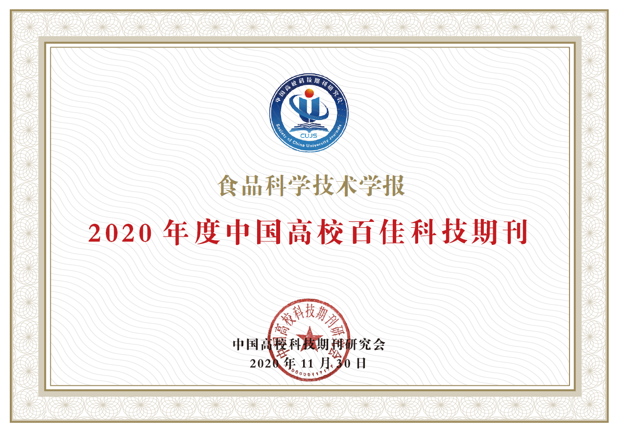 近日,在中國高校科技期刊研究會組織的“高校優秀科技期刊”遴選活動中,我校《食品科學技術學報》被評為“2020年度中國高校百佳科技期刊”。這是自2020年10月,《食品科學技術學報》被評為“RCCSE中國權威學術期刊(A+)”以來,取得的又一項突破性成績。