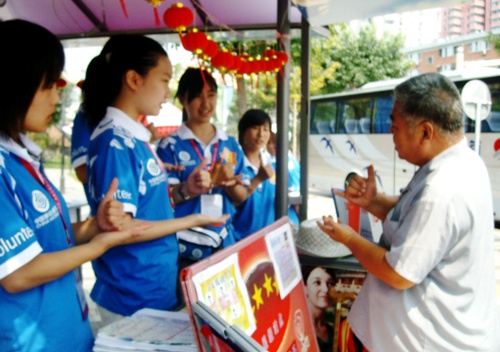 奧運(yùn)會(huì)、殘奧會(huì)期間,我校化工學(xué)院城市志愿者主責(zé)中央電視塔、金域大廈、增光家苑三個(gè)服務(wù)站點(diǎn)。自7月28日上崗以來(lái),志愿者們集思廣益,在提供信息咨詢(xún)、應(yīng)急服務(wù)、語(yǔ)言翻譯等基本服務(wù)的同時(shí),結(jié)合北京奧運(yùn)會(huì)、殘奧會(huì)的開(kāi)展情況以及行人游客的日常需要,開(kāi)展了 “文明出行 為八一獻(xiàn)禮”宣傳活動(dòng)、 “聽(tīng)軍歌 猜軍歌 唱軍歌”活動(dòng)、 “北京文化小講堂”、全民健身趣味體育活動(dòng)、奧運(yùn)剪紙大賽、老北京空竹表演、“我心中的奧運(yùn)明星”、“千言萬(wàn)語(yǔ)寄劉翔”愛(ài)心留言行動(dòng)、“北京小吃對(duì)對(duì)碰”等豐富多彩的活動(dòng),推出了天氣預(yù)報(bào)、路線(xiàn)便簽服務(wù)、北京周邊旅游景點(diǎn)介紹、老北京美食咨詢(xún)、奧運(yùn)賽況時(shí)報(bào)等一系列服務(wù),使每天瑣碎的服務(wù)工作變得具體而又充滿(mǎn)樂(lè)趣。雖然不能像場(chǎng)館志愿者那樣親身感受激烈火爆的比賽現(xiàn)場(chǎng),但是志愿者們也時(shí)刻用最真誠(chéng)的微笑以及最熱情的服務(wù)贏得了中外賓客的稱(chēng)贊。服務(wù)時(shí)期,三個(gè)站點(diǎn)中有兩個(gè)站點(diǎn)被先后評(píng)為“五星級(jí)站點(diǎn)”。