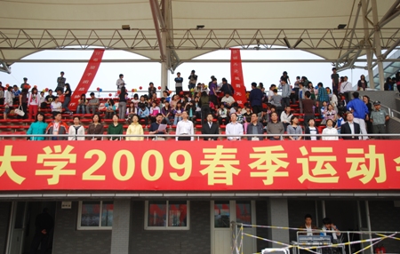 隨后,校黨委副書記盧思鋒宣布:“北京工商大學(xué)2009年春季運動會開幕!”。全場爆發(fā)出熱烈的掌聲。運動員在引導(dǎo)員的帶領(lǐng)下有秩序地退場,本屆運動會正式比賽開始。觀眾臺上,各學(xué)院同學(xué)在學(xué)院的組織帶領(lǐng)下,為運動員搖旗吶喊?,F(xiàn)場氣氛十分熱烈。