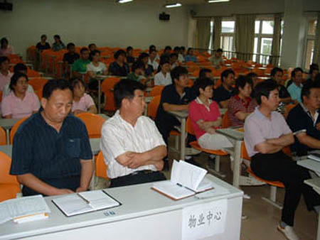 后勤黨總支書記龐春生對后勤安全工作提出了具體要求,他指出:今年是建國60年大慶,后勤要把安全工作放在第一位。夏季來臨,尤其臨近期末考試、放假,后勤飲食、公寓、醫院、運輸、物業、維修等部門,要根據各自的工作性質和特點,采取有效安全措施,切實增強防范意識,把安全生產落到實處。