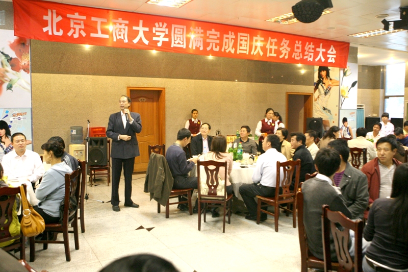 校長譚向勇代表學校向我校國慶活動圓滿完成任務表示誠摯的祝賀,向國慶活動參與人員兩個余月的辛勤付出表示衷心的感謝。校長說,新中國成立60年以來取得了輝煌的成就,值得每個中國人深感自豪。明年就是我校建校60周年的大喜日子,希望師生們繼承和發揚在國慶訓練中表現出的優秀品質和奮斗精神,努力做好校慶的相關工作,為學校實現轉型和科學發展作出自己的貢獻。