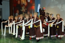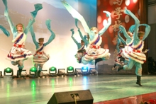 你方舞罷我登場,老師們也不甘寂寞。五名老師身著大紅色蒙古服裝為晚會傾力奉獻了一支《鴻雁》舞蹈。雖然平均年齡達48歲,但老師們在舞臺上的一招一式都顯得那么青春和專業。從排練到正式演出,期間僅僅20個小時,但老師們今夜將鴻雁般的飄逸與靈動完美地展現在了觀眾們的眼前。