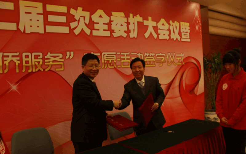 1月27日上午,“情源工商為僑服務”志愿活動簽字儀式在中國科技會堂舉行。全國政協常委、中央直屬機關工委原常務副書記伍紹祖、中央直屬機關工委副書記趙凱、中央直屬機關僑聯主席李君如、全國僑聯原副主席唐聞生等中直機關領導和北京工商大學黨委副書記盧思鋒、經濟學院黨總支書記李寶仁、副書記馬韜光以及校團委書記呂良參加了此次簽字儀式。