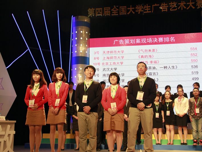 我校的一個策劃團隊成為了廣告策劃類二等獎以上參加決賽的僅有的10個團隊之一,而這10個團隊是從全國27個分賽區868所大學報送的2600件廣告策劃案中脫穎而出的。廣告策劃案的現場決賽在9月24日經過近5個小時的激烈角逐,最終決出廣告策劃案一等獎3名,二等獎7名。我校策劃團隊最后一個出場,能夠頂住壓力,奮勇拼搏,以出色的表現展示了自己的專業素質和提案能力,一舉沖進前三名。在此之前,我校參賽的22個策劃團隊還幾乎囊括了大廣賽北京賽區策劃類一、二、三等獎,共計18項,以及平面類二等獎和三等獎各1項、影視類三等獎1項、公益類三等獎2項。