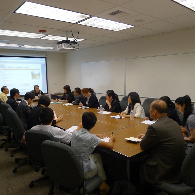 20日上午,UCDAVIS 教學(xué)卓越中心(Center for Excellence in Teaching and Learning)副主任Rosemary Capps博士為培訓(xùn)團(tuán)做了“如何促進(jìn)教師教學(xué)能力提升”的專(zhuān)題講座。她指出,美國(guó)大學(xué)都設(shè)有一個(gè)為教師教學(xué)教法提供咨詢與服務(wù)的專(zhuān)門(mén)機(jī)構(gòu),由從事教學(xué)教法研究的專(zhuān)家通過(guò)隨堂聽(tīng)課、與教師一對(duì)一咨詢、學(xué)生小組討論等方式為那些課堂教學(xué)存在問(wèn)題或困難的教師提供幫助,從而提高課堂教學(xué)效果,為學(xué)生提供高質(zhì)量的教育服務(wù)。這體現(xiàn)了傳統(tǒng)的“以教學(xué)者為中心”向現(xiàn)代“以學(xué)習(xí)者中心”教學(xué)理念的轉(zhuǎn)變。為此,學(xué)校提供教師業(yè)務(wù)素養(yǎng)和創(chuàng)新教學(xué)能力的平臺(tái),大力支持教師的學(xué)習(xí)與發(fā)展。UCD教學(xué)卓越中心項(xiàng)目中積極而明快的校風(fēng)、追求真理的辦學(xué)理念,追求雙贏、不斷追求卓越的教與學(xué)的理念讓培訓(xùn)團(tuán)老師們受益匪淺,大家認(rèn)真記錄,踴躍提問(wèn),與Rosemary Capps博士交流探討。