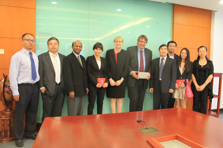 9月17日下午,瑞士日內瓦管理學院董事總經理克萊爾·巴里波(Claire Baribaud)、日內瓦大學高級商業學院個人發展項目主管讓-伊夫·梅西耶(Jean-Yves Mercier)訪問我校,與我校國際交流與合作處、商學院商談兩校的學生交換項目和MBA合作項目。何明珂處長首先轉達了李朝鮮副校長的問候,向外賓介紹了我校的國際化發展情況,并就學生交換項目和MBA合作項目的具體實施方案與兩所學校進行了對接。克萊爾總經理和梅西耶主管對學校的接待表示感謝,對與我校開展學生交換和MBA合作表示了極大的興趣,并商定兩校計劃于2014年秋季學期啟動兩校學生互換項目。