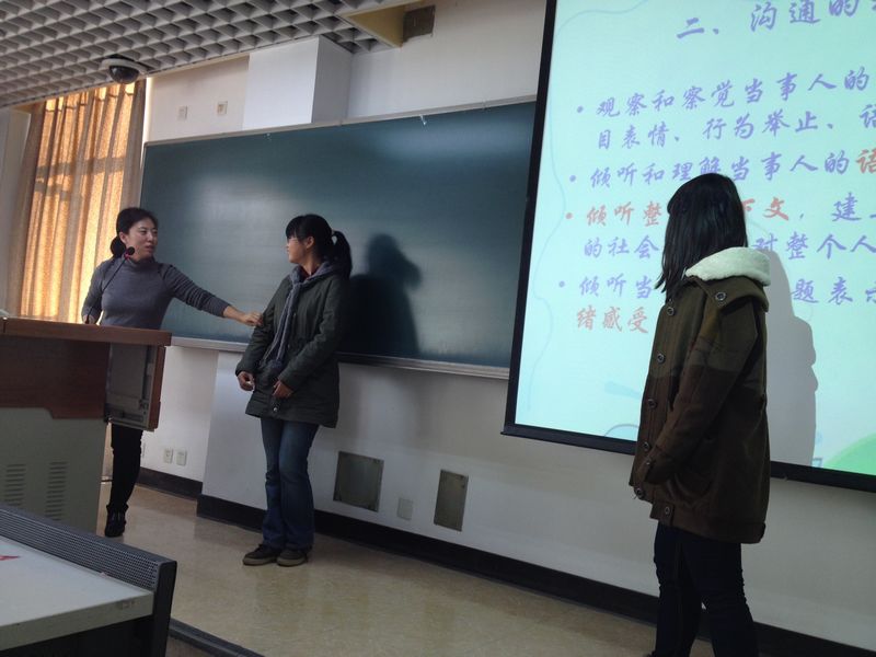 11月6日,北京郵電大學心理中心主任張平老師以“朋輩溝通藝術”為題為大家講解溝通技巧。張平老師先調查了在場心理委員有無在班級里開展工作以及如何開展工作的情況,肯定了一些心理委員在與同學溝通時的做法,并引出了朋輩溝通的主題。張老師通過案例討論、角色扮演、體驗分享等形式,為同學們重點講解了如何與同學溝通,并從傾聽、共情、積極關注、正向引導四個方面進行了詳細說明。