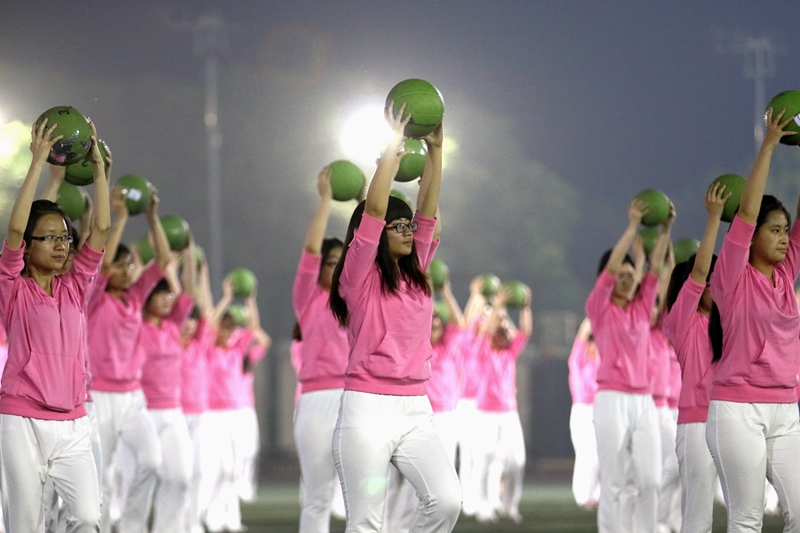在準備開幕式的這段日子里,所有參演師生、指導教師不畏辛苦,利用業余時間抓緊排練。其中,教工們利用中午休息時間積極練習廣播操,摳細節,糾動作,力爭每個動作到位、有力。參加千人體能熱力操演出的學生們,每天晚上下課后在運動場訓練,盡管今年體能熱力操較往年啦啦操難度和強度都提升很多,但大家克服困難,認真排練。樂團的樂手們將為大家帶來1996年亞特蘭大奧運會主題曲《召喚英雄》,希望能夠通過音樂為運動健兒們帶去力量。參加開幕式心理合作項目展示的同學們,在烈日下積極練習,努力將同學們之間的合作展示給全校師生。