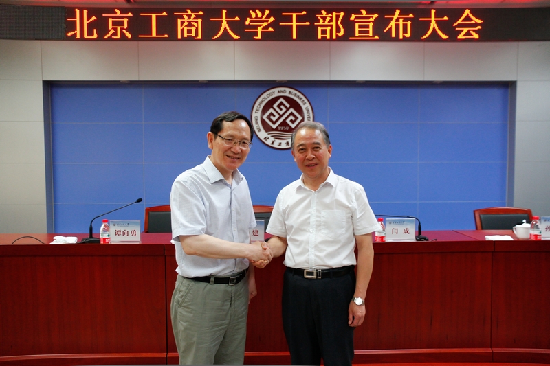 閆成宣布了市委、市政府關(guān)于譚向勇任北京工商大學黨委書記,免去校長職務(wù);孫堯東因到齡不再擔任北京工商大學黨委書記職務(wù)的通知。