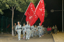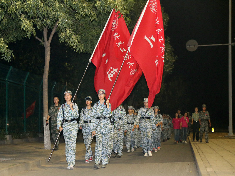 晚上,天氣更是涼爽,同學(xué)們身著迷彩軍裝,背著背包,在教官們的帶領(lǐng)下完成了長達(dá)4.5公里的拉練。一路上同學(xué)們喊著響亮的口號,應(yīng)和著教官唱起軍歌,成長的路上有汗水有淚水,但更多的是戰(zhàn)勝自我后的喜悅與收獲。