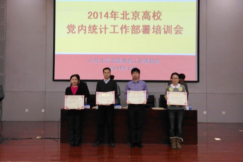 12月9日,市委教育工委召開北京高校2014年黨內(nèi)統(tǒng)計工作部署培訓(xùn)會,并對2013年黨內(nèi)統(tǒng)計工作進(jìn)行總結(jié)和表彰,我校榮獲“黨內(nèi)統(tǒng)計工作全優(yōu)單位”稱號。