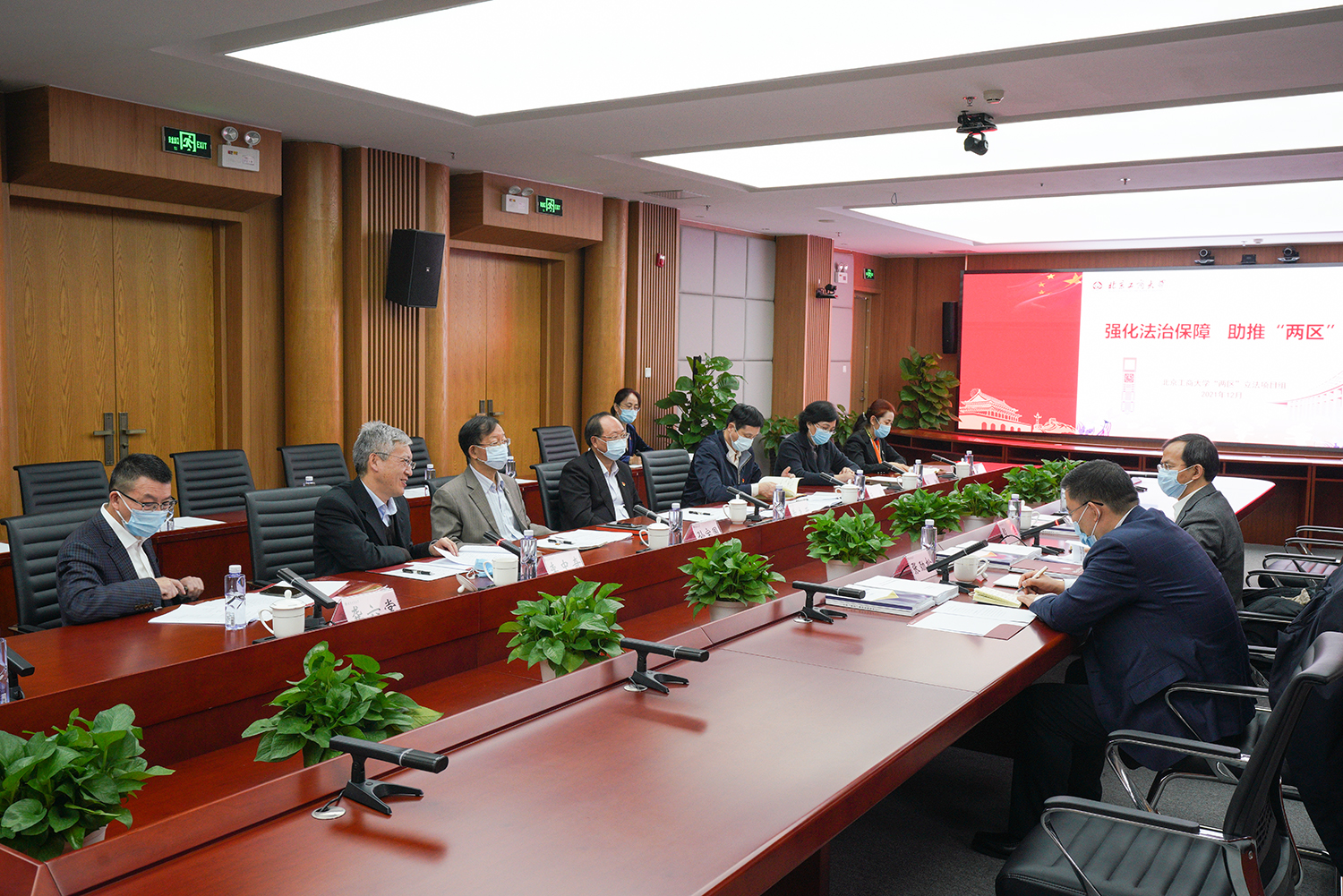 會上,殷勇副市長與我校“兩區(qū)”體制機制改革研究團隊座談交流“兩區(qū)”體制機制改革有關工作。學校“兩區(qū)”體制機制改革研究團隊負責人、法學院李晗副教授匯報研究工作情況,她圍繞推進法定機構試點、設立新型研究機構、完善激勵機制和容錯機制、完善評估考核和監(jiān)督機制等方面,針對“兩區(qū)”管理體制機制創(chuàng)新中的難點和痛點問題進行闡述;并代表學校作《以首善標準推動“兩區(qū)”“三平臺”建設 打造服務北京“高校樣板”》專題匯報,展示了我校服務“兩區(qū)”建設等方面的多項示范性成果。