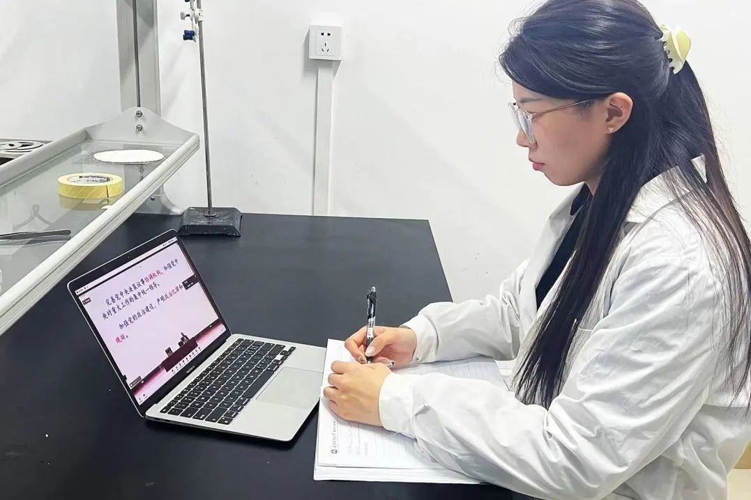 正在四川省宜賓市實習的生物化工、輕工技術與工程第一黨支部書記張桐溪遠程聆聽了培訓課。她談到,本次集中培訓使我深受教育和啟發,中國式現代化是高質量發展的必由之路,是一種具有深厚底蘊和廣闊前景的發展模式。作為一名學生黨員,重任在肩,道阻且長,我們要不斷強化理論學習,專注科研,堅持科技報國的理念,承擔起屬于青年的責任與擔當,在新時代背景下乘風破浪,揚帆起航!