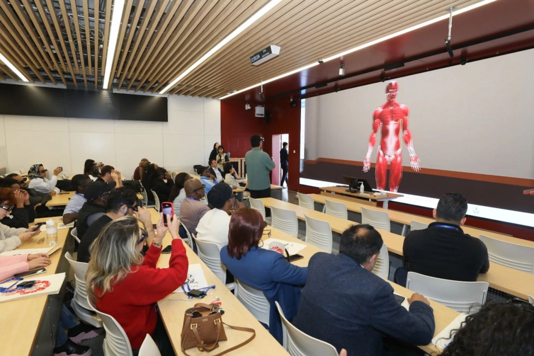 記者團一行觀看了房山區(qū)宣傳片和學校英文宣傳片,參觀了學校數(shù)字未來中心綜合展示區(qū)(融合投影、歷史沿革及榮譽墻、視屏互動)、休閑學習區(qū)、教學動態(tài)展示區(qū)、現(xiàn)代管理展示區(qū)、黨建成果展示區(qū)及會議研討區(qū)等區(qū)域,感受學校探索信息時代下的教育服務模式、教育管理新模式。