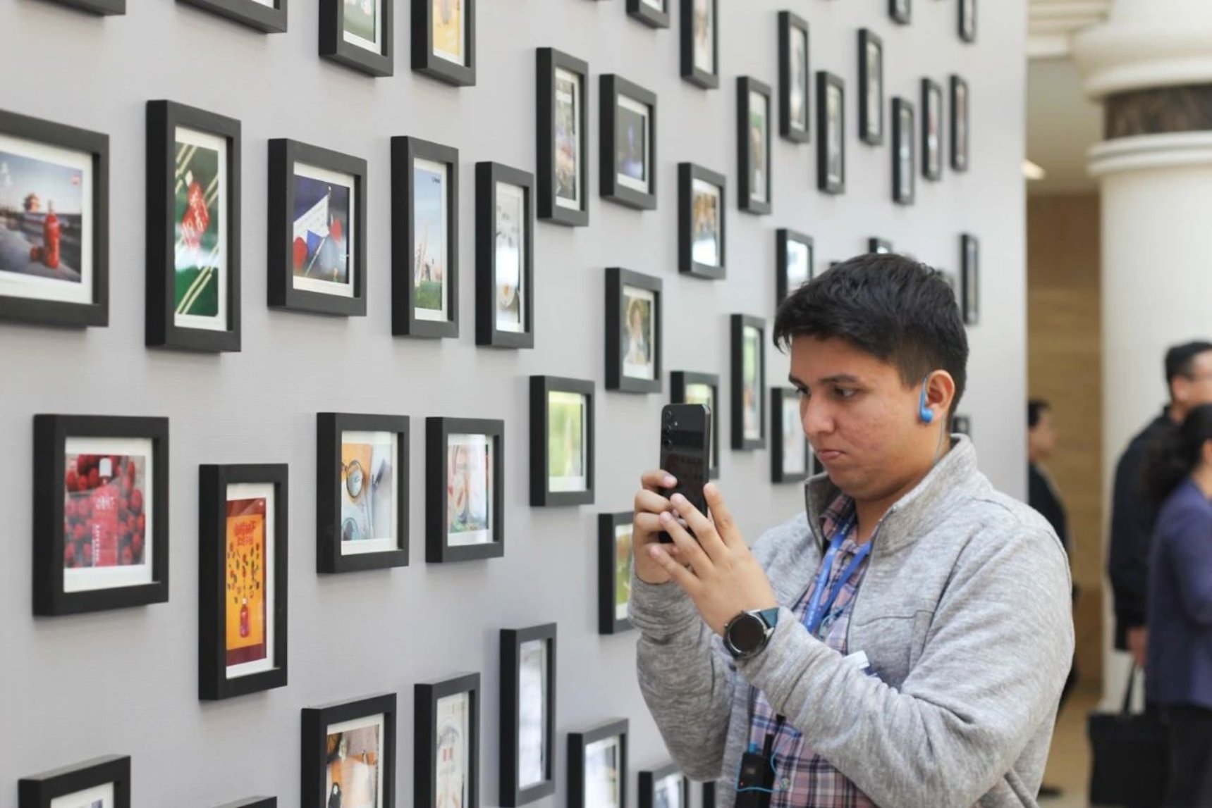 在圖書館大廳,記者們參加了“絲網(wǎng)印刷”文化體驗活動。傳媒與設計學院品牌設計方向的研究生將中國傳統(tǒng)經(jīng)典圖形圖案及北京經(jīng)典文化符號,以當代青年人的視角進行設計再創(chuàng)作,并與絲網(wǎng)印刷革新刷技術手段相結合,邀請記者們共同創(chuàng)作兼具古今文化藝術韻味的絲網(wǎng)版畫作品。當大家看到自己制作的成果時,都紛紛感嘆絲網(wǎng)印刷的神奇和中國傳統(tǒng)文化的魅力。