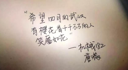 風(fēng)雨壓不垮,苦難中開花。等到春暖花開冰雪融化,再去武漢看櫻花。武漢加油!中國加油!(信管181王瑞東)