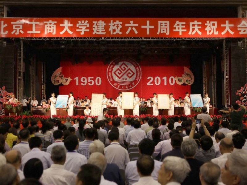 6月12日上午,北京工商大學建校60周年慶祝大會在良鄉校區文體館隆重舉行。中共中央政治局常委李長春,全國人大副委員長陳至立、商務部部長、黨組書記陳德銘發來賀信,向全校師生員工致以熱烈的祝賀和誠摯的問候!各級領導及六十余位國內大學校長、書記,該校院士,國外大學校長,社會各界友人和各屆校友代表、師生代表、各大媒體記者等共約1500余人參加了慶祝大會。