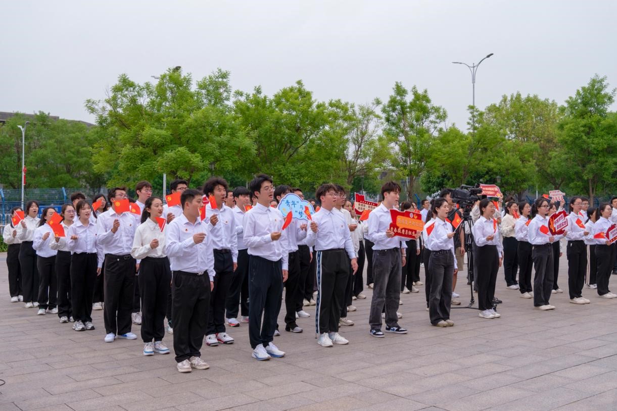 儀式最后環(huán)節(jié),全體師生齊唱《光榮啊,中國共青團》。大家舞動旗幟,在嘹亮的團歌聲中熱情和決心被點燃,深刻體會到了作為共青團員的榮譽和責任。
