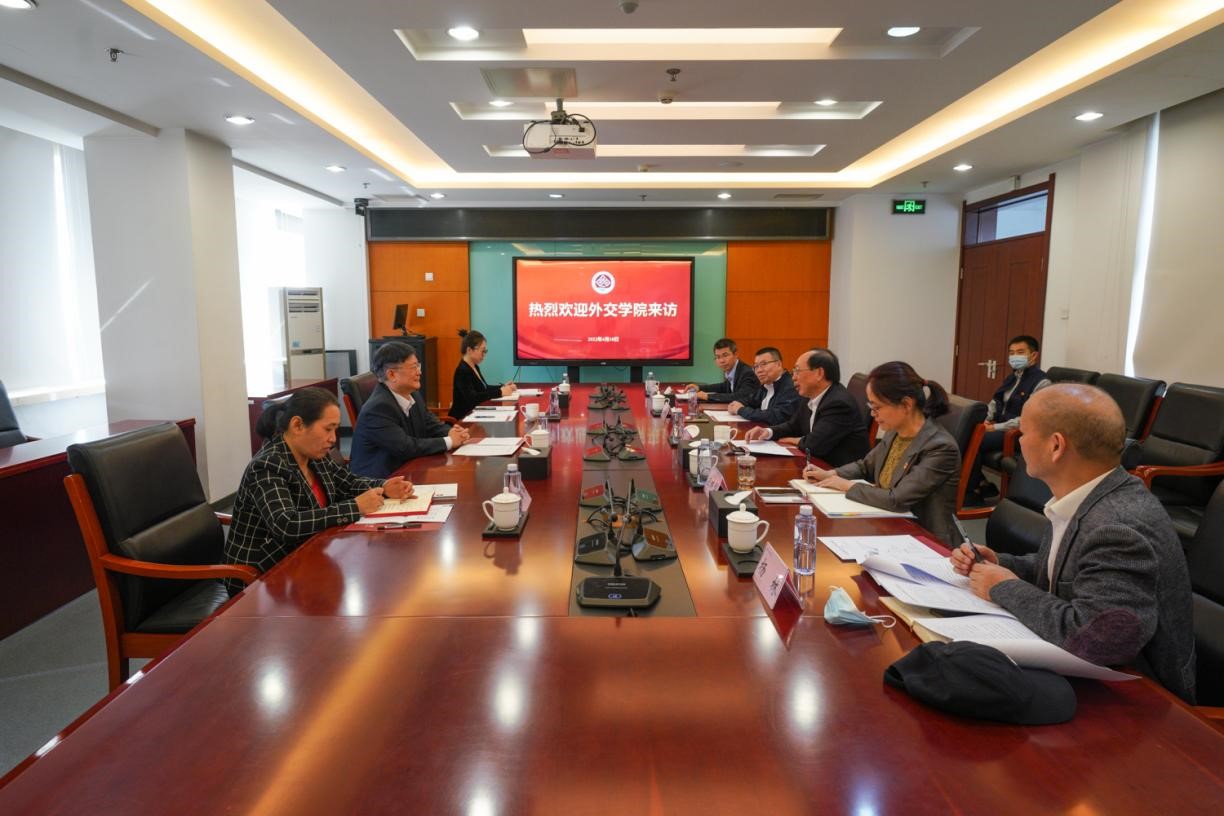 崔啟明對我校的熱情接待表示感謝,他回顧了外交學院建校與辦學歷史中的紅色基因,結合教學科研與人才培養以及“雙一流”建設等方面所取得的成就指出,外交學院面向國家重大戰略需求,堅持以培養一流外交外事人才為主線,積極開拓創新、探索培養復合型外交外事人才的新途徑,全面提升學科建設水平。希望兩校加強溝通交流,互促并進,在人才培養、學科建設等方面強化合作。