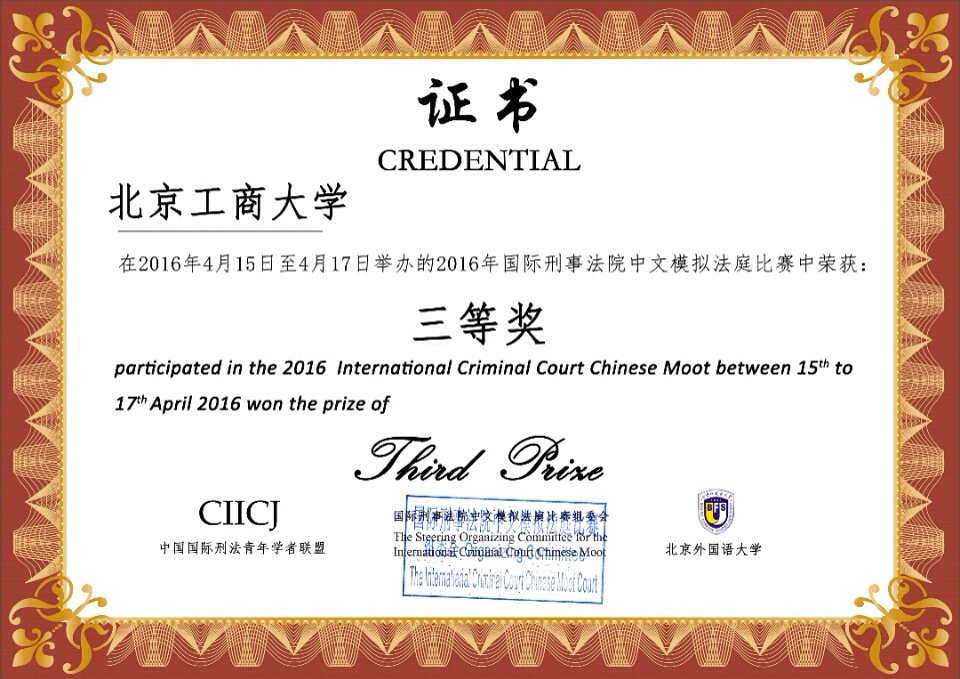 近日,從2016年國(guó)際刑事法院中文模擬法庭競(jìng)賽賽場(chǎng)傳來(lái)消息,我校法/馬學(xué)院參賽隊(duì)與清華大學(xué)、廈門(mén)大學(xué)等高校并列獲得了本屆比賽三等獎(jiǎng)。