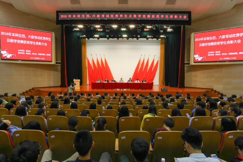為加強(qiáng)學(xué)風(fēng)建設(shè),進(jìn)一步營(yíng)造良好的學(xué)習(xí)氣氛,4月27日,學(xué)校在良鄉(xiāng)校區(qū)召開2016年本科生四六級(jí)考試優(yōu)秀學(xué)生及數(shù)學(xué)競(jìng)賽獲獎(jiǎng)學(xué)生表彰大會(huì),對(duì)2015年12月份全國(guó)大學(xué)英語四六級(jí)考試成績(jī)優(yōu)異學(xué)生和2015年校內(nèi)數(shù)學(xué)競(jìng)賽獲獎(jiǎng)學(xué)生進(jìn)行表彰。校長(zhǎng)孫寶國(guó)、黨委副書記張德玉出席活動(dòng)。共700余名師生參加了表彰會(huì),活動(dòng)由副校長(zhǎng)李朝鮮主持。