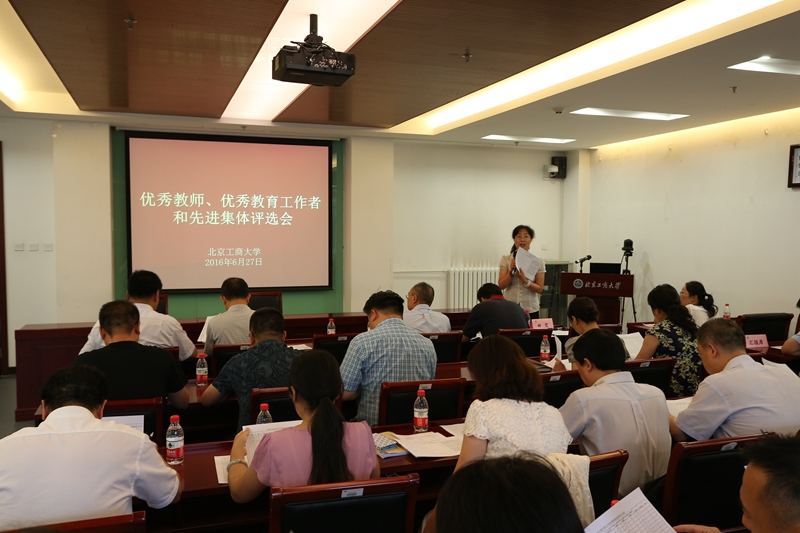 根據(jù)學(xué)校《關(guān)于開展北京工商大學(xué)優(yōu)秀教師、優(yōu)秀教育工作者和先進(jìn)集體評選表彰活動的通知》(北工商校發(fā)[2016]21號)文件精神,在各單位申報(bào)推薦基礎(chǔ)上,經(jīng)學(xué)校初審,確定共有優(yōu)秀教師候選人30名、優(yōu)秀教育工作者候選人23名,13個(gè)單位申報(bào)先進(jìn)集體。為進(jìn)一步體現(xiàn)公平、公正、公開,此次評審會評委由學(xué)院(部)主要負(fù)責(zé)人以及相關(guān)職能部門負(fù)責(zé)人組成,進(jìn)行現(xiàn)場投票。