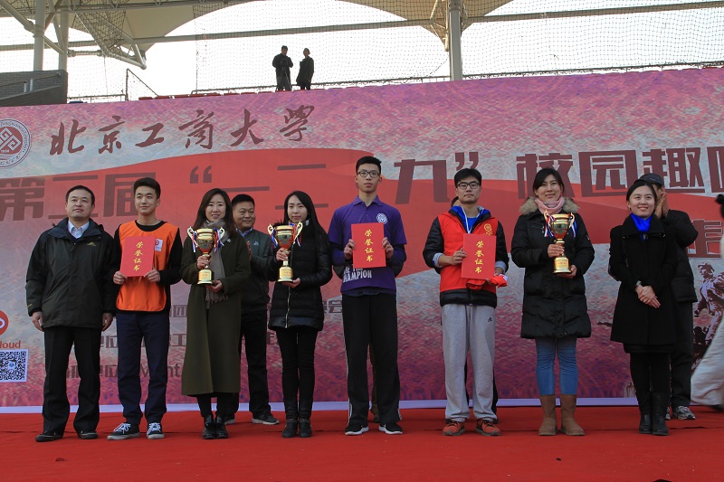 隨后,活動正式開始,本次活動分為競技組和大眾組,共設強渡烏江(三磚渡河)、遵義會議(集體跳繩)、四渡赤水(4*10m接力)、巧渡金沙江(托球繞障礙)、爬雪山(雪中取火)、過草地(地雷陣)、激戰(zhàn)臘子口(足球射門)、會寧大會師(齊心協(xié)力向前沖)8個重要長征關卡。學生們在比賽中既重走了長征路,感悟了當年不屈不撓、頑強奮斗的革命精神,又體會了競技體育的快樂,培養(yǎng)了齊心協(xié)力、攻克難關的團隊意識。最終,經(jīng)過激烈角逐,藝術與傳媒學院獲得本次校園馬拉松比賽的一等獎,法學院、商學院、計算機與信息工程學院獲得二等獎,經(jīng)濟學院、理學院、食品學院、材料與機械工程學院、外國語學院獲得三等獎,理學院、材料與機械工程學院、商學院獲得最佳組織獎。校園趣味迷你馬拉松活動在歡樂的氣氛中圓滿結束。