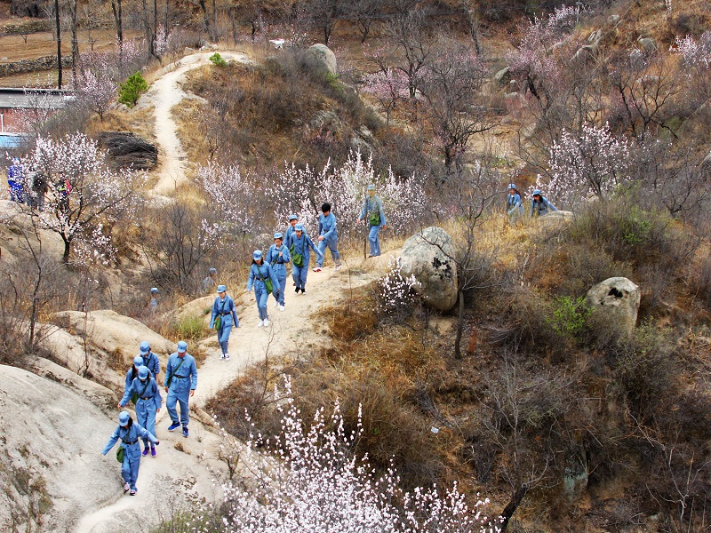 我校和兄弟院校的師生穿軍裝、走革命路、參觀遺址遺跡、聽紅色故事、吃行軍餐、接受愛國主義教育。伴隨著《抗日將士出征歌》,進行了全程約5.4公里的行軍體驗。隊伍從延慶區大莊科鄉霹破石村出發,途經村委會、進村路、沙門村、景而溝村、登山、白乙化雕像、沙塘溝戰斗遺址,最后到達了大莊科鄉平北紅色第一村紀念館。在行至霹破石村委會前,當地村民還奉獻了擁軍秧歌、吹嗩吶等精彩表演,為大學生普及了紅色文化,演繹了當年的軍民魚水情。我校食品學院侯宇軒表示:“通過徒步體驗和情景互動,穿越歷史時空,切身感受到當時八路軍的艱難險阻,緬懷革命前輩前仆后繼的大無畏精神,鼓勵我們牢記歷史,不忘初心。”