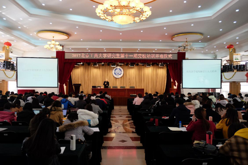 11月22日下午,我校2017研究生黨校培訓班開班儀式在阜成路校區舉行。研究生院副院長兼黨委研工部副部長熊慧、各學院黨校班主任參加了開班儀式。研究生入黨積極分子、研究生黨支部書記,以及教工入黨積極分子共計198人參加了培訓。開班儀式由本次黨校培訓班負責人池笑主持。