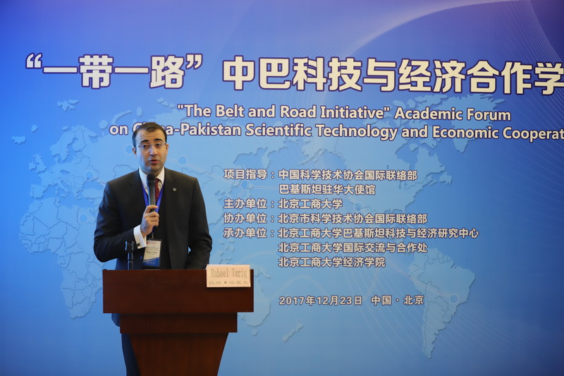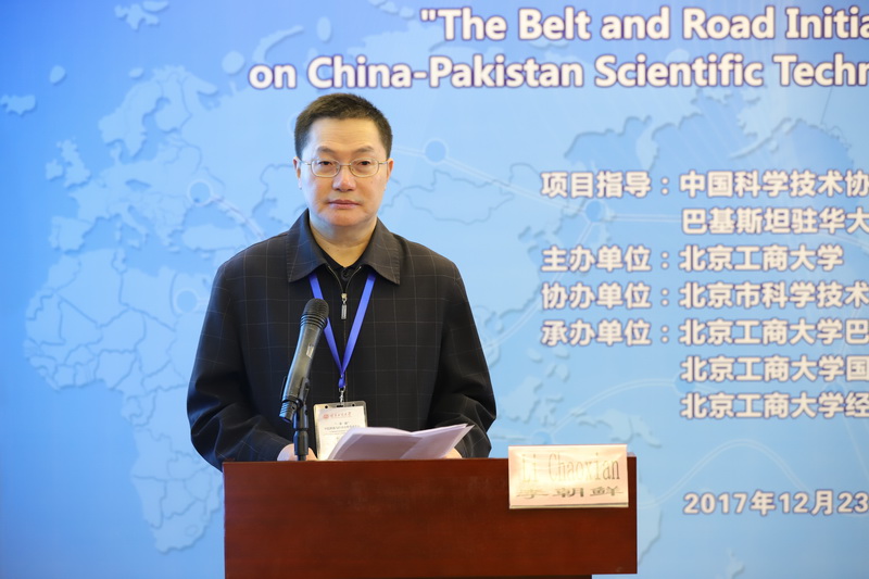 12月23日,在中國科學技術協會國際聯絡部、巴基斯坦駐華大使館和北京市科學技術協會國際聯絡部的大力支持下,“一帶一路”中巴科技與經濟合作學術論壇在我校舉辦。我校副校長李朝鮮、中國科學技術協會國際聯絡部副部長王慶林、巴基斯坦駐華大使館一等秘書拉赫•塔里克、北京科學技術協會國際聯絡部副部長曾福林出席了本次論壇。來自國資委、農業部、國家發改委、中國社會科學院、北京大學、中國人民大學、中央財經大學、對外經貿大學、中國科協和北京市科協會員代表等近40家單位的產學研專家,以及我校巴基斯坦科技與經濟研究中心、國際交流與合作處和經濟學院師生100余人參加會議。開幕式由國際交流與合作處處長劉影主持。