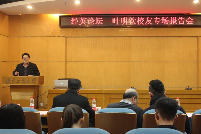 12月27日,經濟學院在阜成路校區舉辦“經英論壇”校友專場報告會。學院邀請78級商業經濟系校友、金港控股有限公司董事長、金港汽車文化發展(北京)股份有限公司董事長兼CEO葉明欽重回母校,為師生做題為“金港商業模式”的高端學術講座。研究生院院長楊德勇、校友會秘書長呂東燕、經濟學院黨委書記張正平與150余名研究生參加了本次報告會。會議由學院黨委副書記杜亞輝主持。