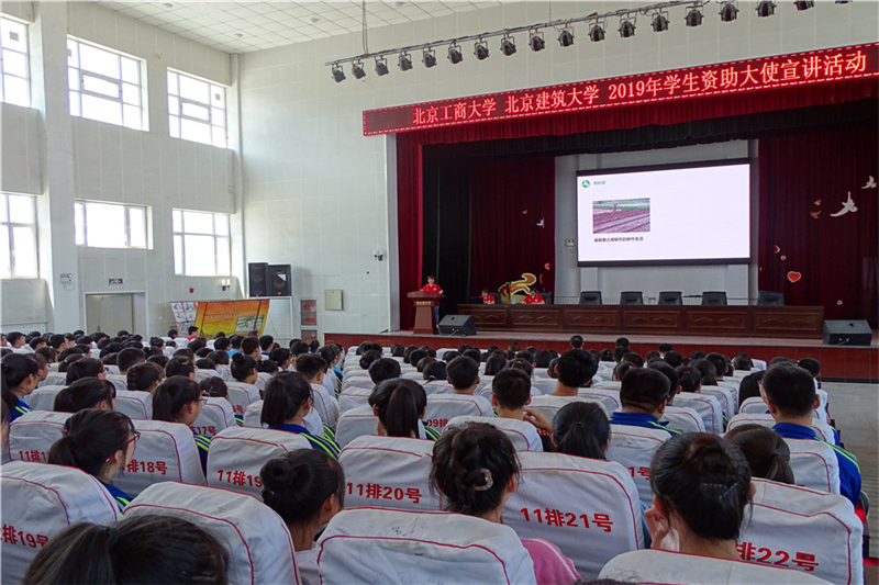蔚縣西合營高中和桃花中學(xué)家庭經(jīng)濟(jì)困難學(xué)生比例較高,學(xué)生中途輟學(xué)率非常高,這兩所學(xué)校是此次資助政策宣講活動的主要陣地。為提升宣講效果,學(xué)生資助中心從參加活動的大使中精心挑選了8名成績突出、演講水平較好學(xué)生作為宣講員,他們都是國家資助政策的受益者。在宣講中,北京建筑大學(xué)彭葉同學(xué)講述了自己從小因?yàn)榧彝ソ?jīng)濟(jì)條件太差幾近輟學(xué),在國家資助政策幫助下重新振作考上大學(xué)的曲折故事;我校計(jì)信學(xué)院姜珍同學(xué)講述了她如何不屈服于命運(yùn),勤奮學(xué)習(xí),獲得多項(xiàng)國家級獎項(xiàng)并榮登《人民日報(bào)》的艱辛歷程;北京航空航天大學(xué)全華林同學(xué)講述了他大學(xué)期間參軍入伍,返校后以優(yōu)異成績考上名校攻讀碩士的勵志故事……大使們真實(shí)、真摯的宣講引起了臺下學(xué)生的強(qiáng)烈共鳴,很多學(xué)生感動落淚,現(xiàn)場不時爆發(fā)出雷鳴般的掌聲。西合營中學(xué)的一名學(xué)生表示,這是她第一次了解到國家資助政策,也知道了貧窮并不是推不動的絆腳石,有了國家的資助,她一定會在求學(xué)的道路上努力的走下去,讓知識改變命運(yùn)。