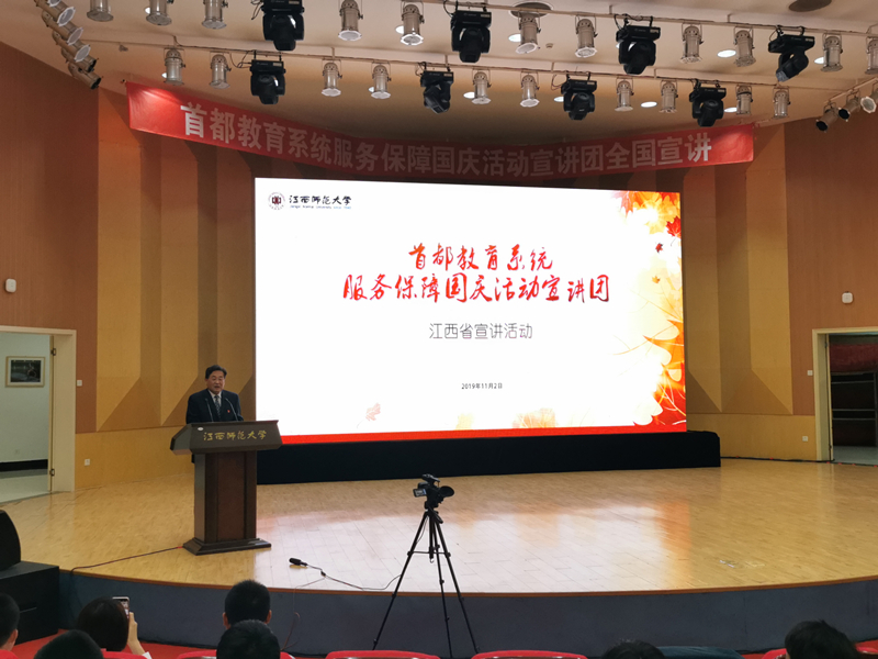為貫徹落實(shí)中央關(guān)于國慶活動總結(jié)的指示精神,教育部會同北京市組建首都教育系統(tǒng)服務(wù)保障國慶活動宣講團(tuán)分赴全國三十個省市進(jìn)行宣講,旨在通過宣講以鮮活的事例、典型的人物為載體,對全國廣大高校師生開展一次生動的愛國主義黨課,一次活潑的思政教育課,激發(fā)大學(xué)生的愛國主義情懷,堅(jiān)定理想信念。按照統(tǒng)一安排,我校與北京林業(yè)大學(xué)一起組成宣講團(tuán)于10月31日至11月3日赴江西省宣講。