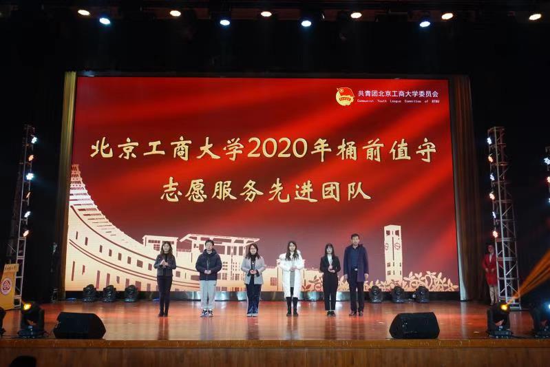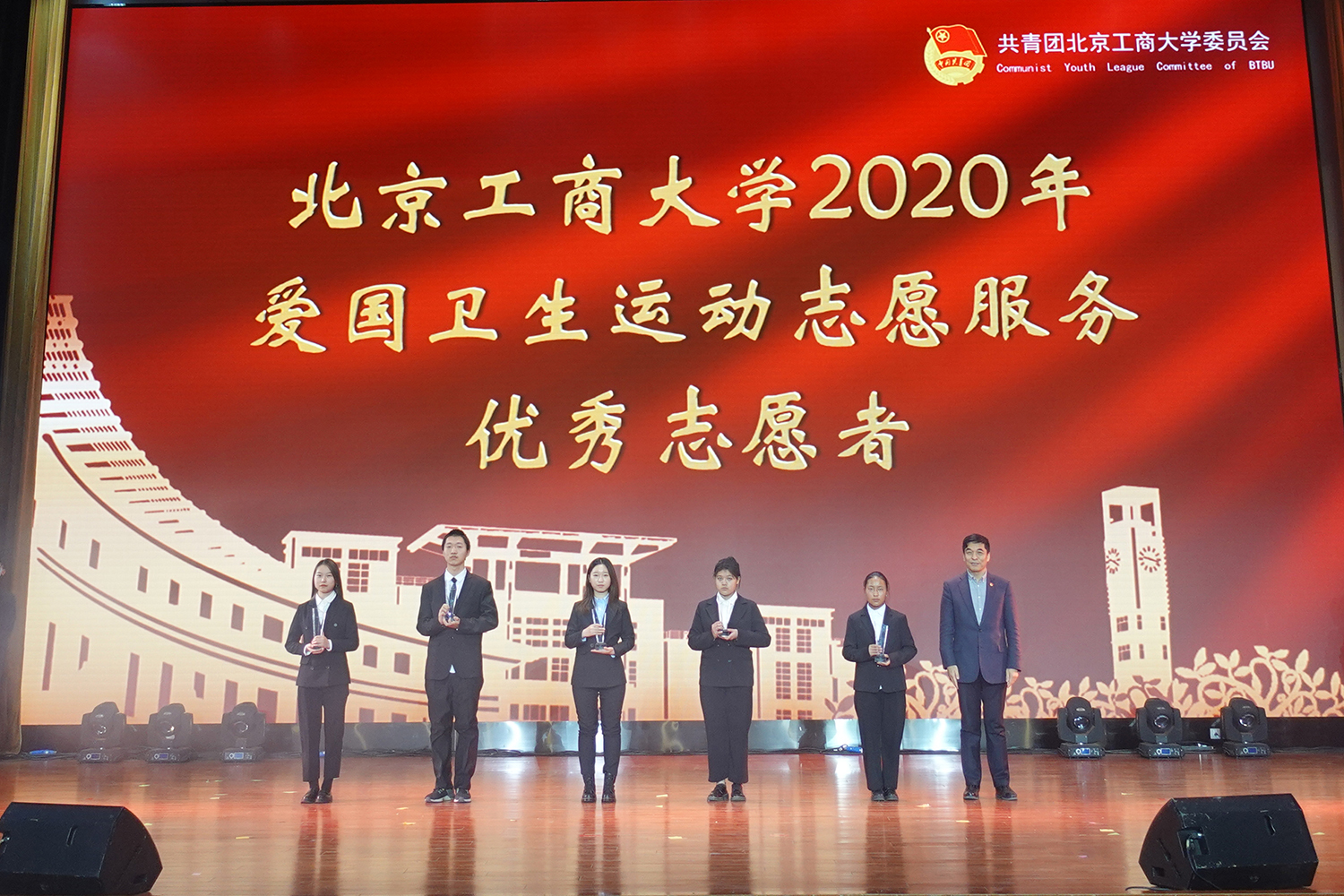 校團委青年志愿者協會秘書長王若冰宣讀了《關于表彰2020年北京工商大學志愿服務工作優秀志愿者、先進個人及先進團隊的決定》。與會領導分別為桶前值守、社區(鄉)疫情防控先進個人、2020年志愿服務工作優秀志愿者、慶祝學校成立70周年志愿服務優秀志愿者、愛國衛生運動優秀志愿者以及2020年志愿服務工作先進團隊頒獎。