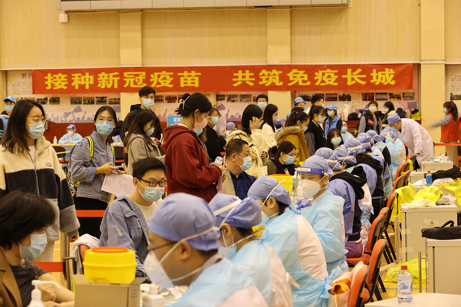 此次疫苗接種場地設置在良鄉校區文體館,設立5個分區、15個接種臺,醫務人員數量50人。通過科學規劃分區,等待、咨詢、登記、接種、留觀、離場 ,形成閉環管理,疫苗接種流程及防疫工作秩序井然、安全高效。210名志愿者們積極報名參與接種工作。接種日,志愿者們分4個時段上崗,每時段20人,全程為接種同學們提供貼心、細致服務。