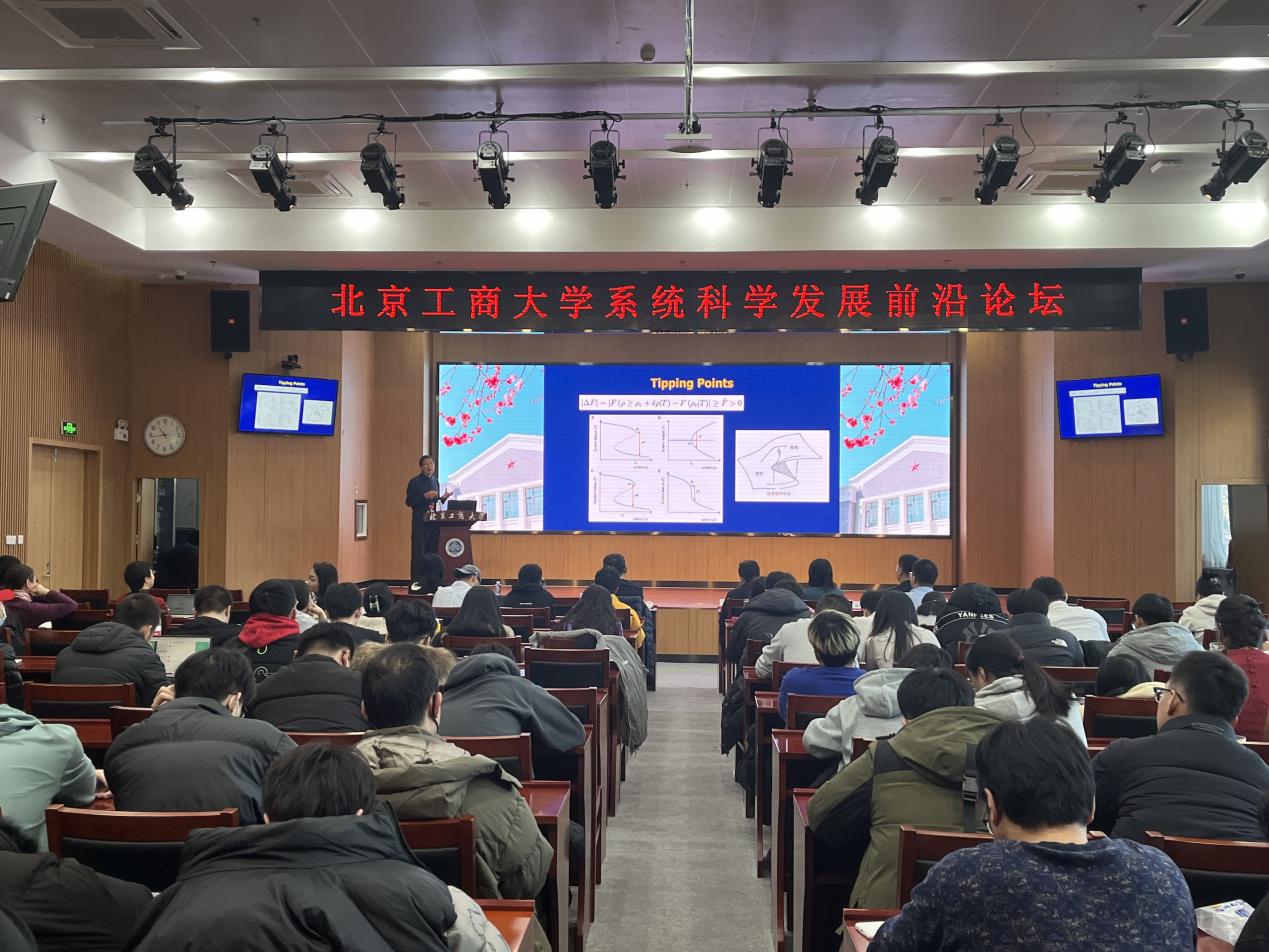 狄增如教授作題為《無(wú)盡的前沿——系統(tǒng)科學(xué)新疆界》的學(xué)術(shù)報(bào)告。狄增如教授從宏觀世界的科學(xué)問(wèn)題出發(fā),為同學(xué)們講述了系統(tǒng)科學(xué)的發(fā)展歷程及其發(fā)展的前沿方向。狄增如指出,從生命科學(xué)、醫(yī)學(xué)與健康到經(jīng)濟(jì)金融及國(guó)家安全領(lǐng)域,系統(tǒng)科學(xué)為人類(lèi)解決日益復(fù)雜的社會(huì)和科學(xué)難題提供了重要的途徑。他還對(duì)我校系統(tǒng)科學(xué)學(xué)科的建設(shè)情況表示了充分認(rèn)可,并希望學(xué)部院系師生能以更廣闊的視野和更高的追求,積極參與系統(tǒng)科學(xué)學(xué)科建設(shè)。