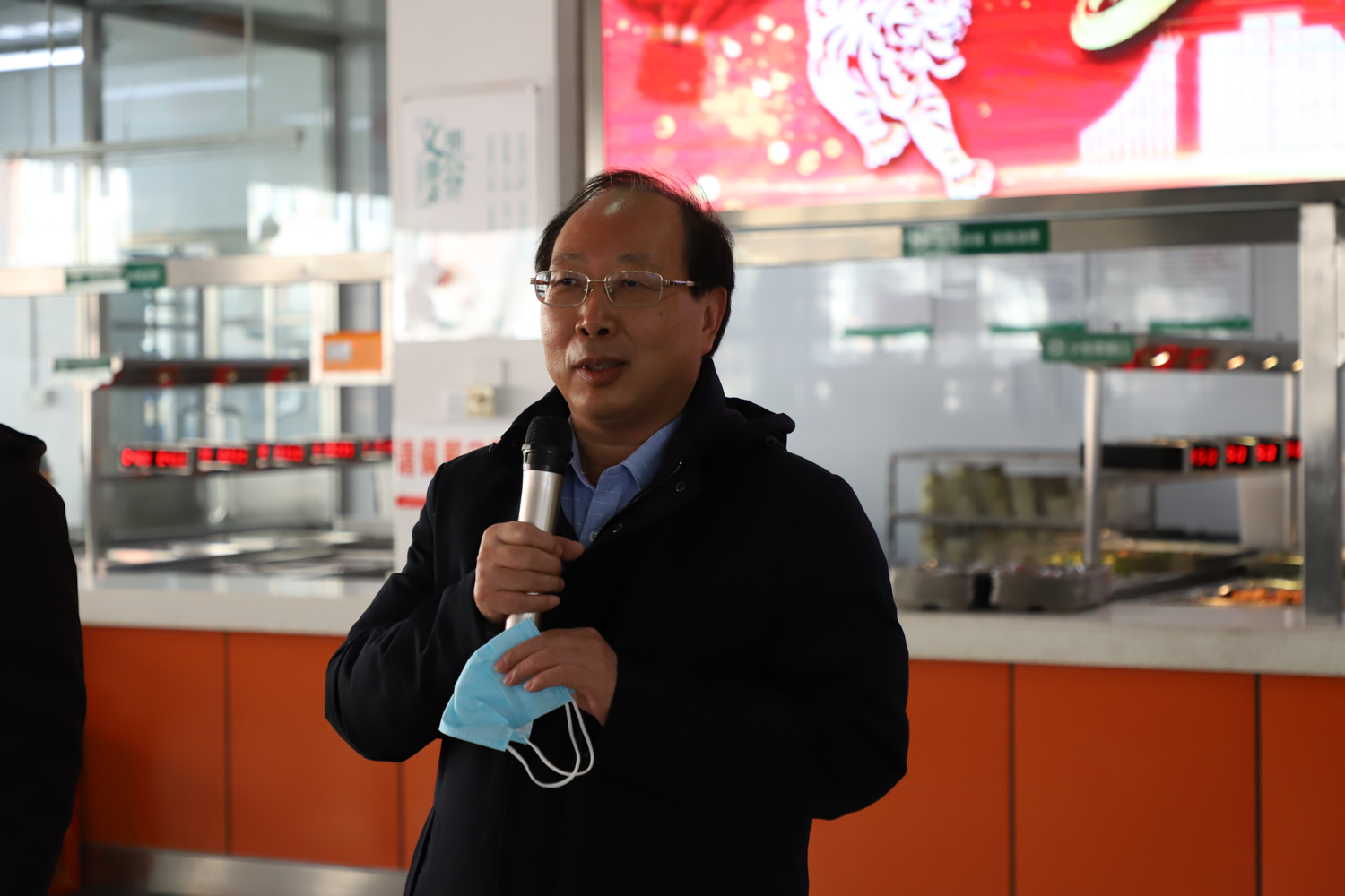 黃先開指出,疫情發生以來,校園保衛人員和后勤服務人員發揚連續作戰精神,強化責任擔當,堅守工作崗位,為全力守護好師生的安全健康做出了重要貢獻。黃先開強調,當前疫情防控任務依然艱巨,大家要繼續保持定力、克服困難、咬緊牙關不松勁,立足崗位履職盡責,以更深入更細致更扎實的工作,從嚴守好校園大門,竭盡全力做好服務保障,構筑起上下聯動、縱橫貫通的“保障線”,讓留校學生過一個放心安心暖心的虎年春節。黃先開鼓勵留校學生要珍惜假期時間,充實自己,注意個人防護,保重身體,學校將全力以赴做好留校學生學習、科研、生活等各項保障工作。