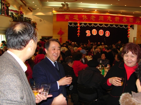 春節(jié)將至,辭舊迎新。1月15日上午我校在阜成路東校區(qū)學生食堂三層大廳舉行2009年老同志新春團拜會。學校黨委書記孫堯東、校長譚向勇、副書記盧思鋒、副書記兼紀委書記張德玉、副校長孫寶國、謝志華、李朝鮮、王尚忠、張耘以及各部門的領導同離退休老同志500余人歡聚一堂,共慶新春佳節(jié)。
